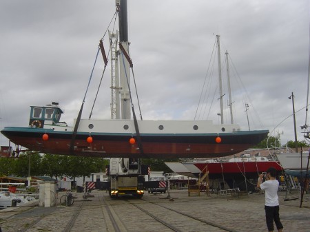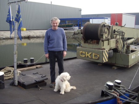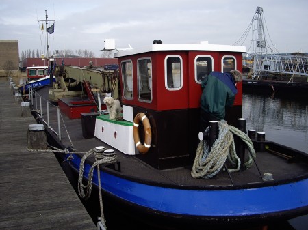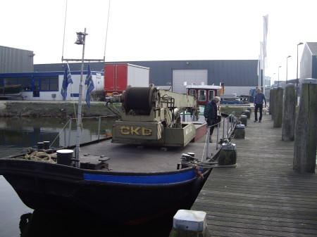 J'ai redemandé à la visiter, un peu plus en détail. Elle appartient au chantier nautique Brouwer, à Zaandam, à coté d'Amsterdam. Elle est utilisée comme avitailleur, et actuellement, une grue occupe tout son pont.