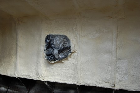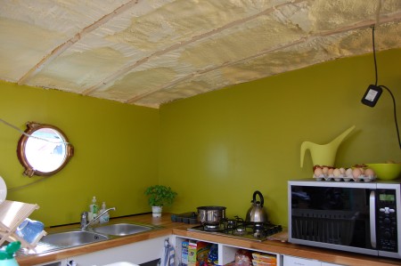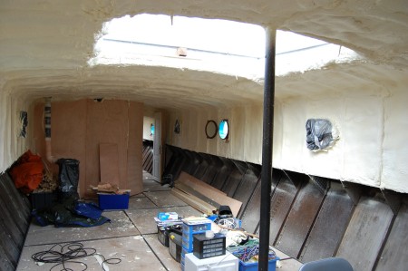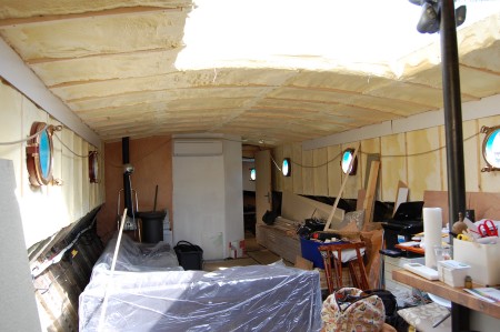 Une fois à l'eau, nous pourrons faire l'isolation intérieure de la superstructure. Rendez-vous est pris le 27 juillet avec une société spécialisée dans la projection de mousse polyuréthane pour l'isolation.