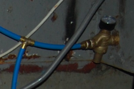 réducteur de pression avec manomètre, réseau eau chaude et eau froide réalisé en PER de 16mm.