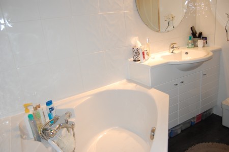 La salle de bain est terminée. La baignoire est bien agréable et l'ensemble est très fonctionnel.