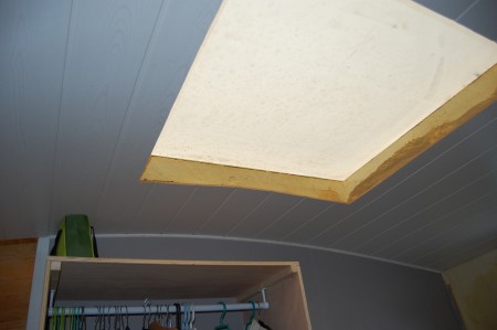 Nous sommes même obligés de rajouter des tasseaux au plafond afin de descendre un peu sous la mousse. Nous perdons 3cm de hauteur sous barrot, mais nous gagnons en isolation et en facilité pour passer les fils électriques. Bof, 2m12 ou 2m15, c'est kif kif...