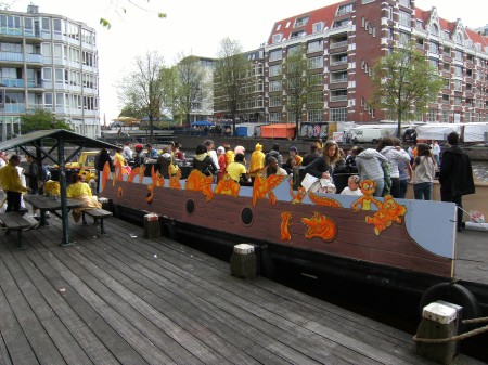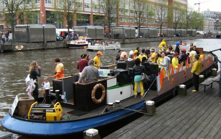 et assurera toute la journée à slalomer dans les canaux encombrés d'Amsterdam, au son de 6000w de musiques électro, pendant que Marjo est moi hallucinerons d'avoir le privilège de vivre cette fête extraordinaire, qui voit plus d'un million et demi de personnes