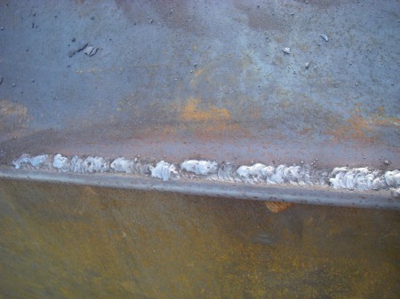 J'utilise un poste à souder Inverter de marque Gys, d'une puissance maximale de 160A. Les fers plats sont soudés à clin, à la baguette rutile de 3.2mm, à 115A, recto et verso.