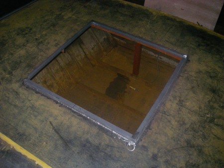Le périmètre de la super-structure est tracé à la craie, puis un fer plat en 50x8mm est soudé sur la tranche, en suivant le trait de craie.