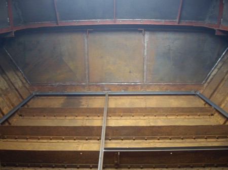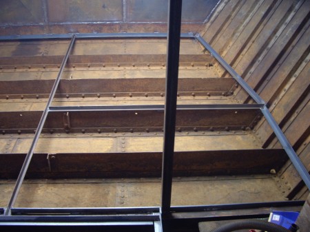 Le pont est constitué de tôles gaufrées de 5/7mm, rivetées sur des barreaux en cornières de 50x50. Nous conservons une largeur de 30cm pour les passavants.