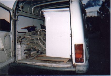 ![]() La pauvre 4L avec une demi-tonne de tuyaux de plomb et la gazinière de ma cuisine. ![]() A la hachette, découpe des tuyaux. Depuis, j'ai fabriqué une guillotine, bien moins fatigante. ![]() La fonte des morceaux de tuyaux aux alentours de 327°, j'ai pas froid, là !! |