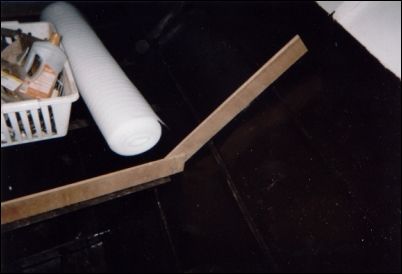 Cela rigidifie la cloison, ce qui permet d'utiliser du 12mm, et servira à la pose du vaigrage. Chaque membrure est recouverte de mousse d'isolation de 3mm utilisée en batiment comme sous couche de parquets, tenue par les cloisons et les tasseaux. A cela deux avantages : on évite les zones de condensation en éliminant toutes les zones froides, et on protège