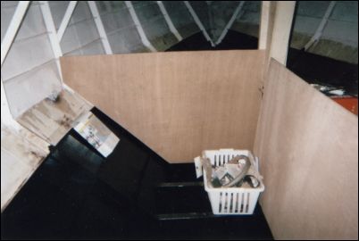 ![]() Ensemble des cloisons transversales posées et isolation des membrures ![]() Carré terminé et vernis |